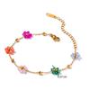 2 Pieces/set of Gold Color Chain Colored Flower Necklace Bracelets, Suitable for Ladies' Sweet Daily Party Jewelry Gifts