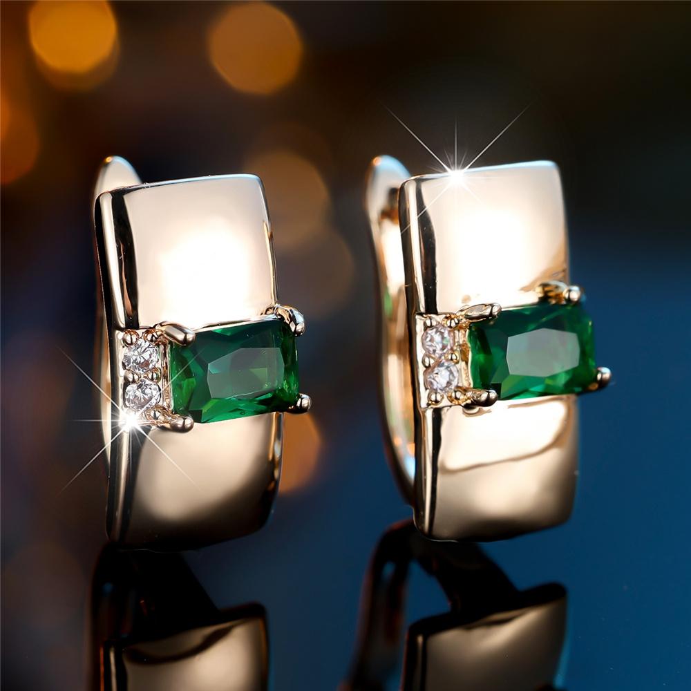 Cute Female White Green Zircon Stone Hoop Earrings Luxury Gold Color Wedding Jewelry For Women