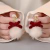 2025 Snowflake Antler Hair Ball Tassel Earrings for Women Cute Red Bow Plush Earrings Light Luxury Temperament Christmas Jewelry