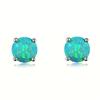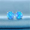 Cute Female Blue Crystal White Green Fire Opal Stone Stud Earrings Silver Color Wedding Jewelry For Women