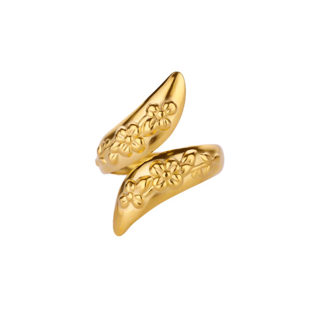 Geometric Flower Pattern Open Rings Women Gold Color Stainless Steel Geometric Ring Jewelry Gift