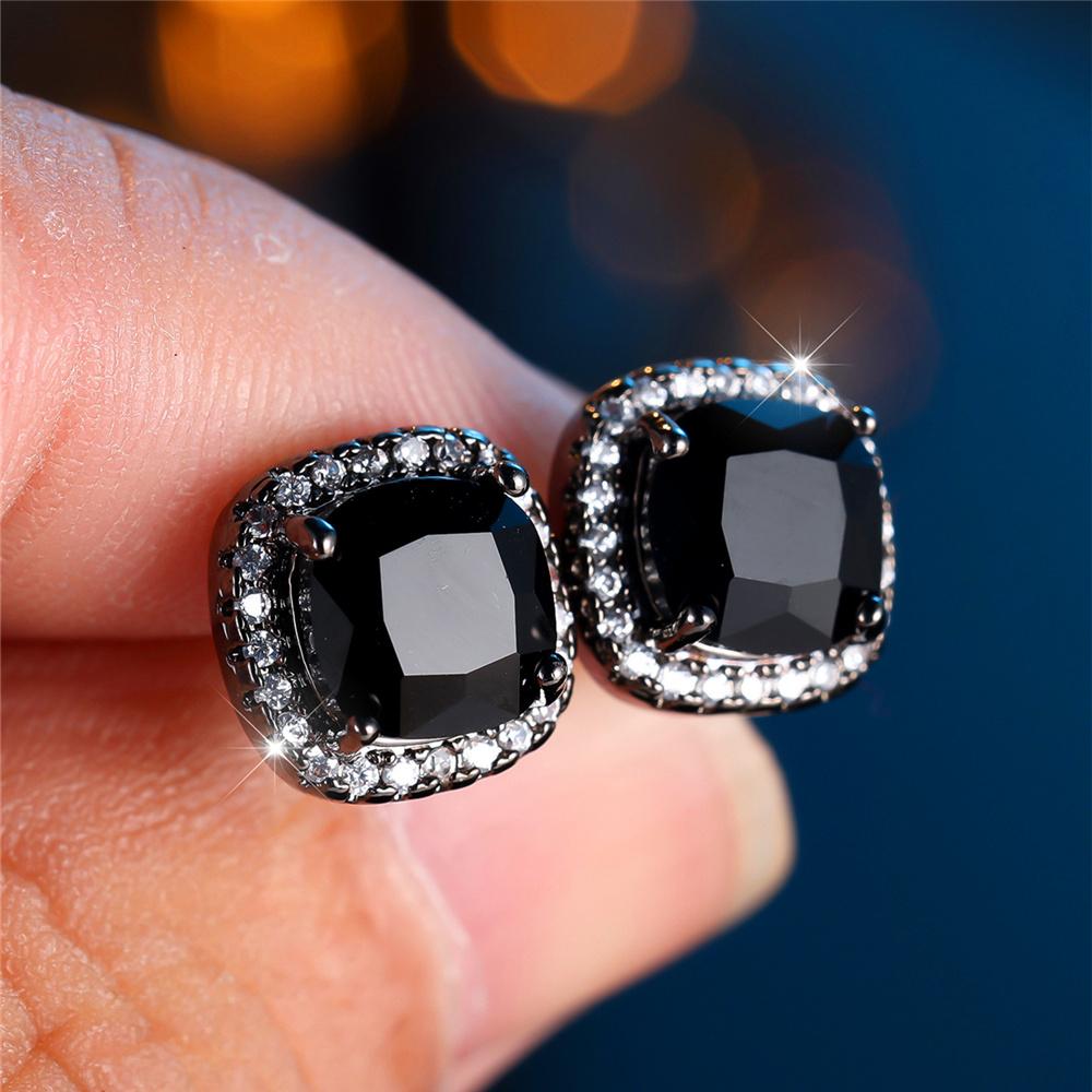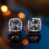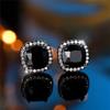 Cute Female Crystal Rainbow Zircon Stone Square Stud Earrings Black Gold Color Wedding Jewelry For Women