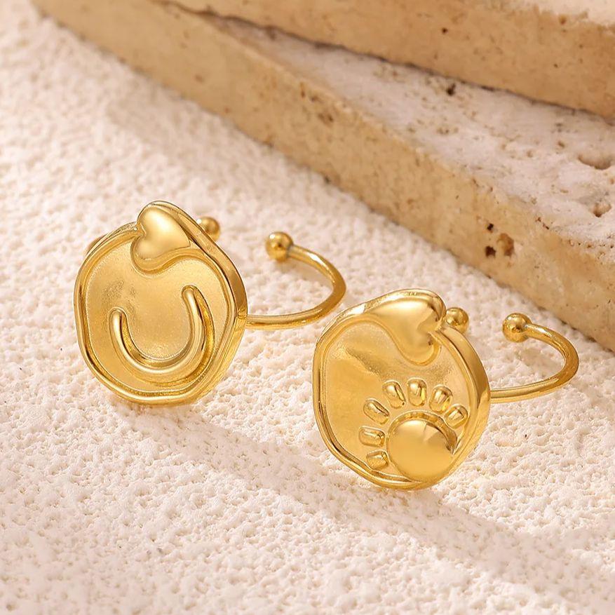 Stainless Steel Geometric Heart Moon Rings For Women Gold Color Heart Sun Opening Ring Wedding Christmas Jewelry Gift