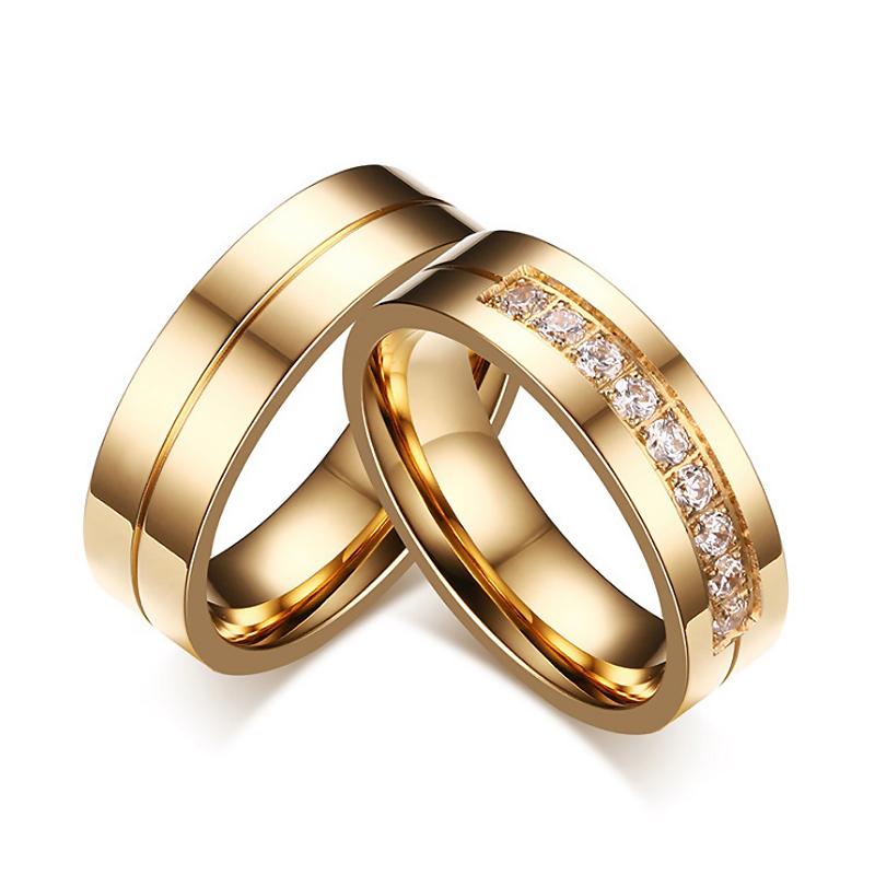 Gold Color Wedding Bands Rings for Women Men High Quality CZ Engagement Couple Promise Ring Anniversary Alliance Jewelry Gift
