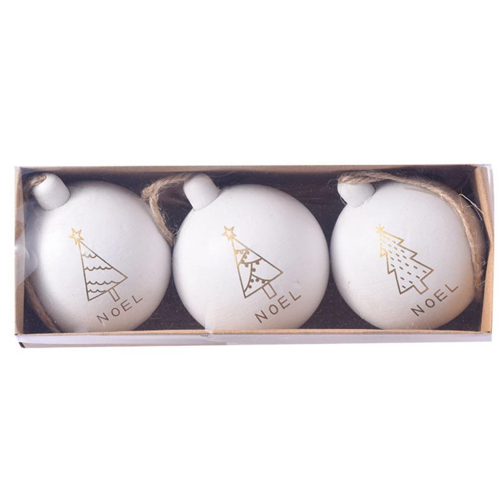 3Pcs 6cm Wooden Christmas Balls Shatterproof Decorative Christmas Tree Pendants Reusable Christmas Ball Decorations Party Favors