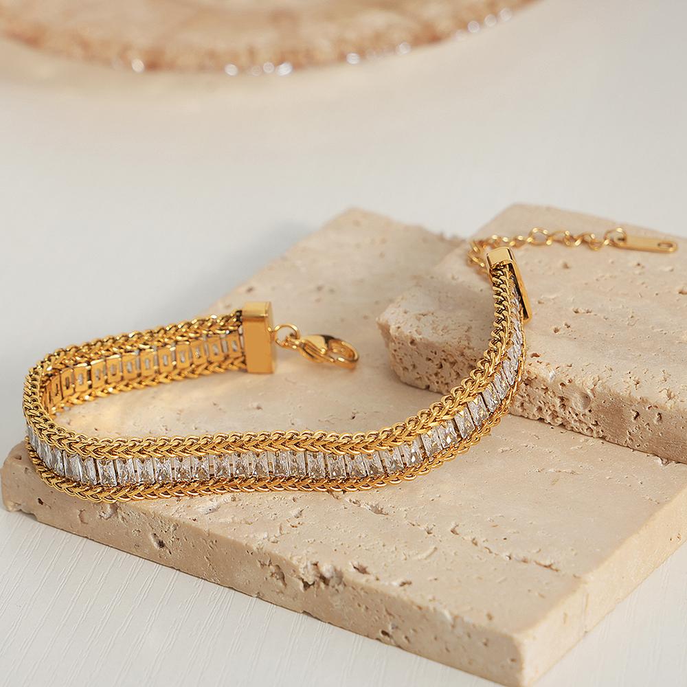 Wrist Jewelry Accessories Girls Gifts 316L Stainless Steel Sparkling Zircon Chain Bracelet for Women
