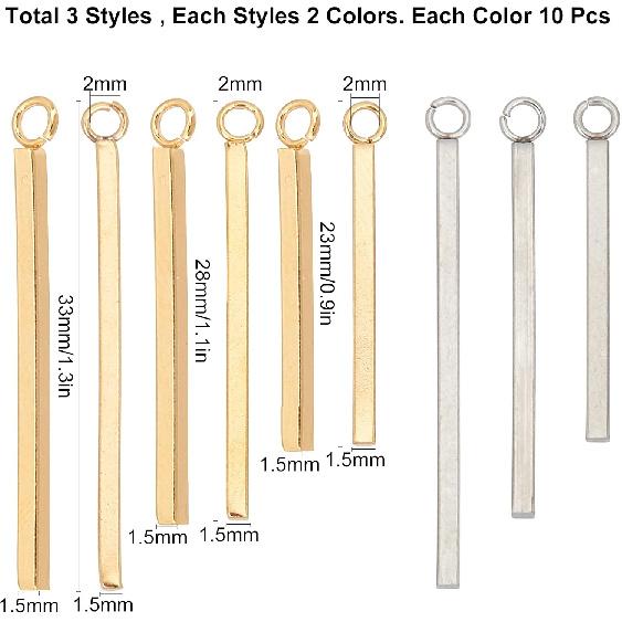 SUNNYCLUE 1 Box 60Pcs 3 Sizes Gold Vertical Charms Stamping Blank Bar Charms Stainless Steel Metal Bar Charm Rectangle Tags for Jewelry Making