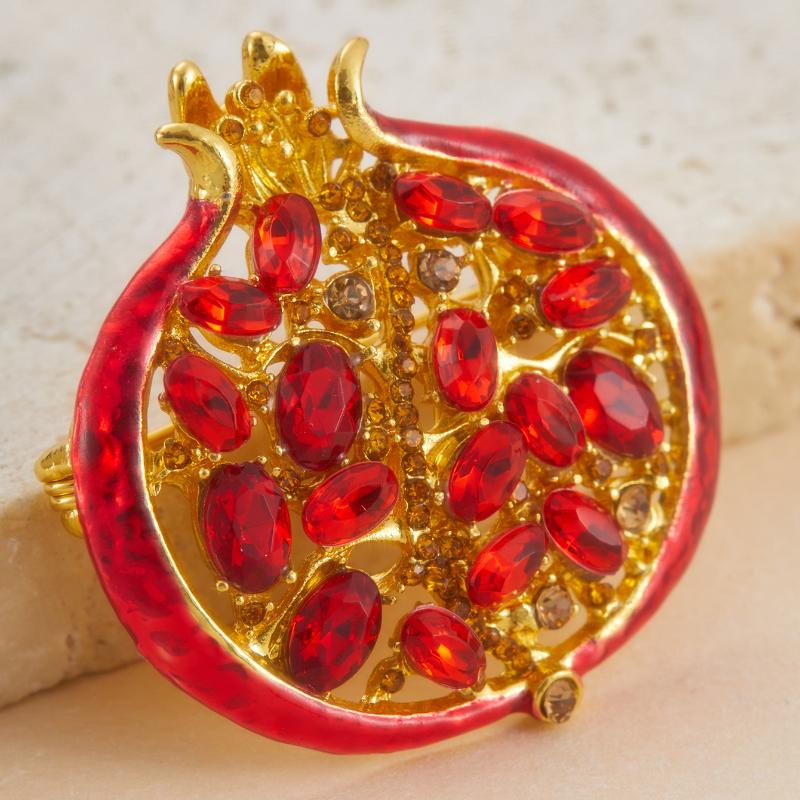 Luxury Zircon Pomegranate Brooches for Women Enamel Fruit Plant Pins Casual Party Accessories New Christmas Gifts Friends