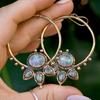 Vintage Bohemian Lotus Pendant Earrings for Women's Beach Vacation and Daily Jewelry, Casual Earrings with Tear Drop Design