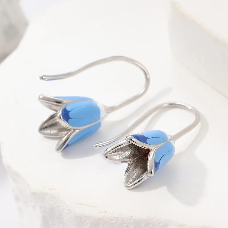 Exquisite Blue Wind Chime Flower-shaped Pendant Earrings Women's Elegant Jewelry Accessories Gifts Fit for Daily Wearing