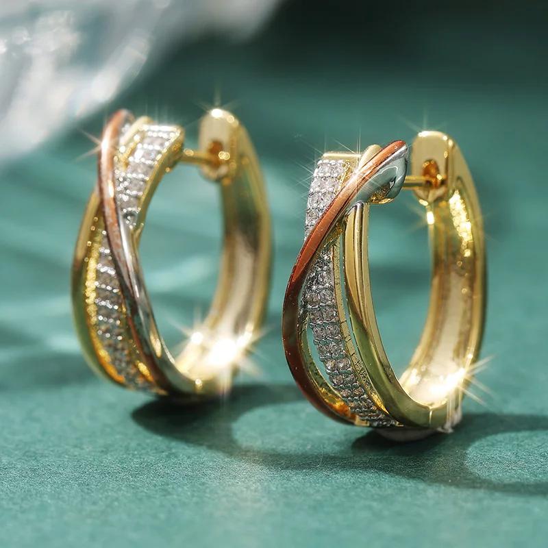 Luxurious Women's Double-row Synthetic Zircon Design Hoop Earrings Exquisite Golden Plated Daily Versatile Jewelry Gifts