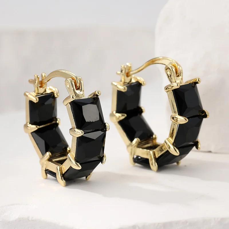 Classic Black Synthetic Zirconia Checkered Hoop Earrings for Women's Exquisite Party Holiday Jewelry Accessories Crafts