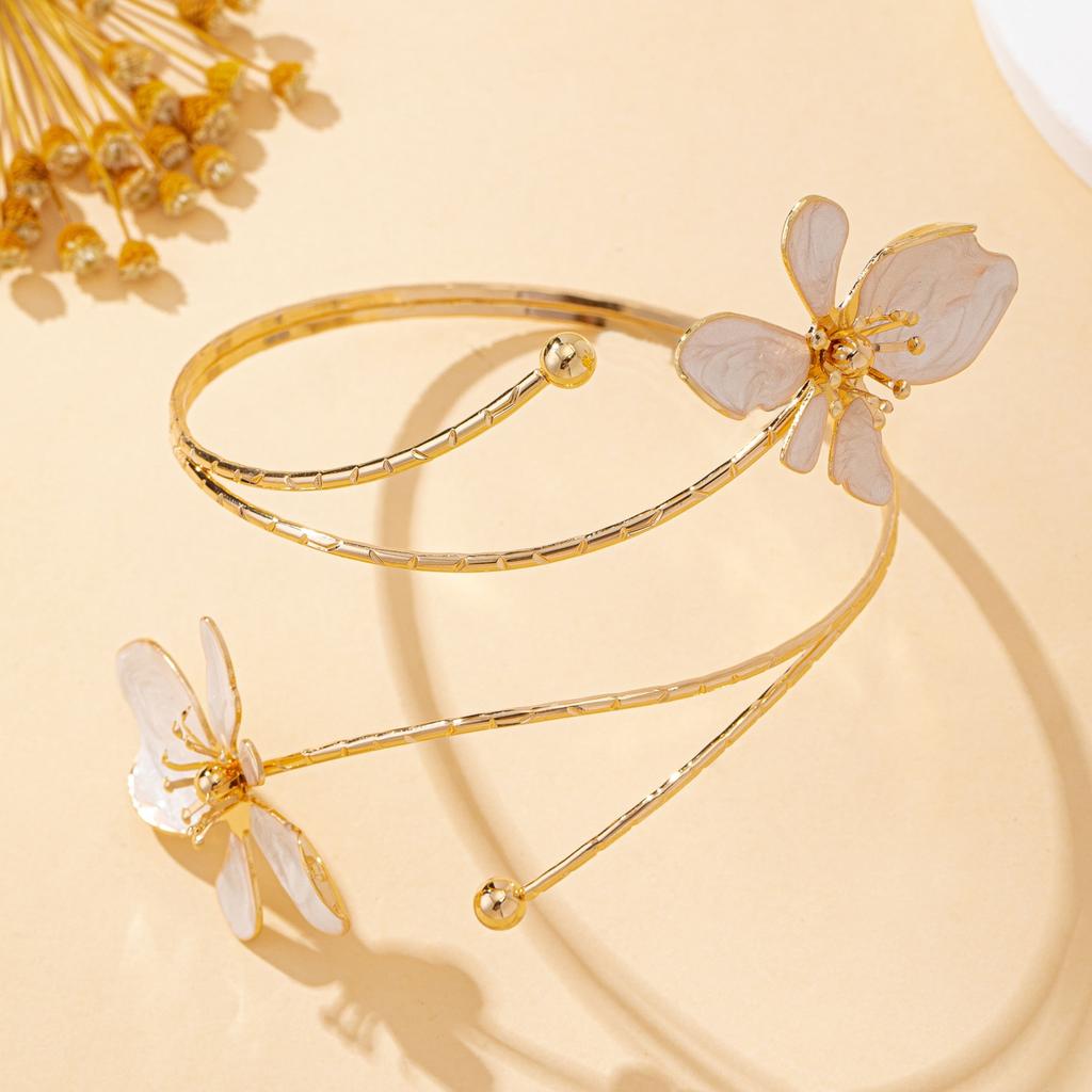 A Women's Arm Bracelet, White Oil-Drip Flower Design, Elegant Women's Arm Bracelet, Suitable for Daily Wear and Banquet Wear