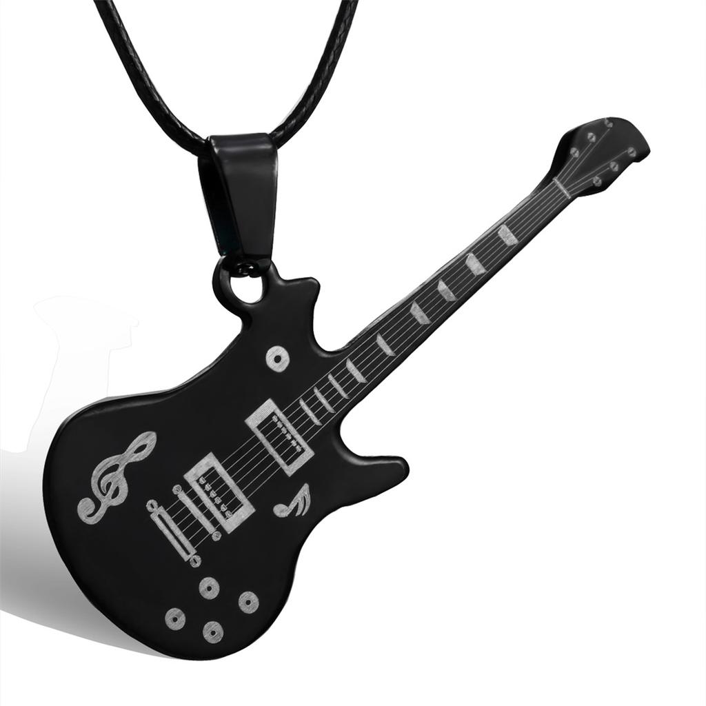 Stainless Steel Guitar Pendant Necklace For Men Women Retro Punk Musical Instrument Rope Chain Choker Party Jewelry Gift