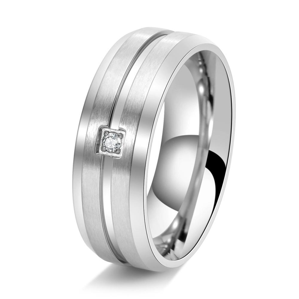 Men's Titanium Steel Ring Minimalist Carved Single Diamond Brushed Wedding Band Trendy Jewelry Gifts for Him Valentine's Day