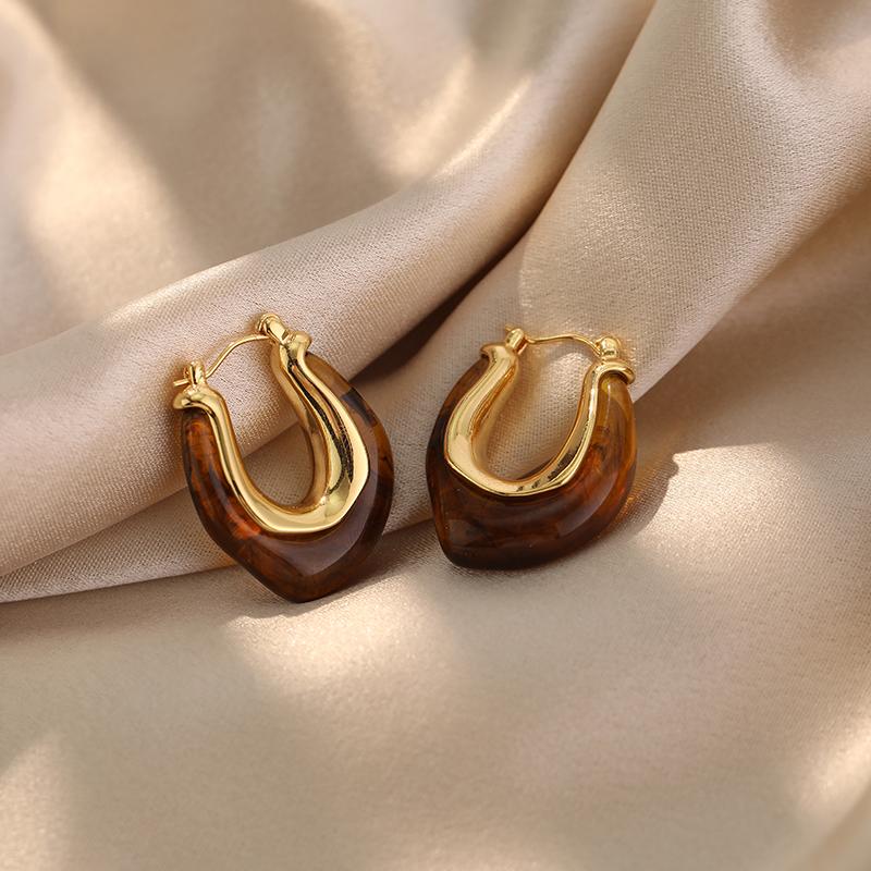 New European and American Classic Temperament Copper Amber U-shaped Earrings for Women's Banquet Jewelry Earrings 2023