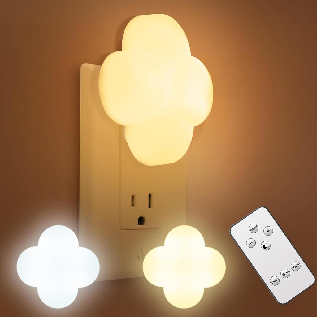 Plug In Night Light Remote Control LED Nightlight, 2 Pcs Dimmable Lamp, 3 Colors, Timer 15/30/60 Min Wall Lighting for Baby Nursery, Bedroom, Kid