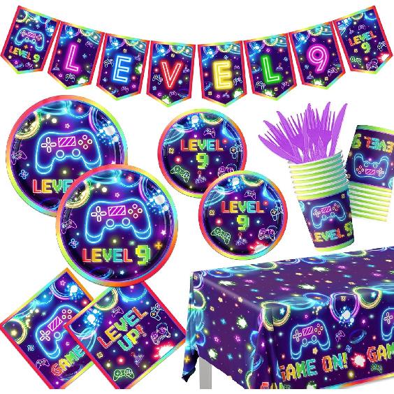 142pcs 9th Video Game Birthday Decorations for Boys 9th Gaming Birthday Party Supplies Tableware 9th Video Game On Plates Napkins Banner Tablecloth