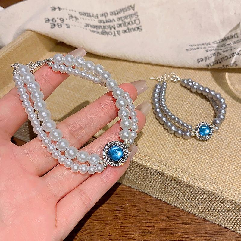 2025 Popular Aquamarine Pearl Bracelet Women's Light Luxury Design Double-layer Bracelet Jewelry