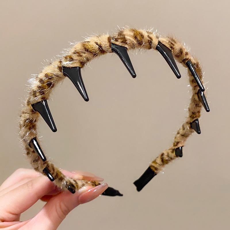 Leopard Print with Teeth Wavy Headband Female Hair Root Fluffy Artifact Wash Face Pressure Hair Non-slip Headband Hairpin Head