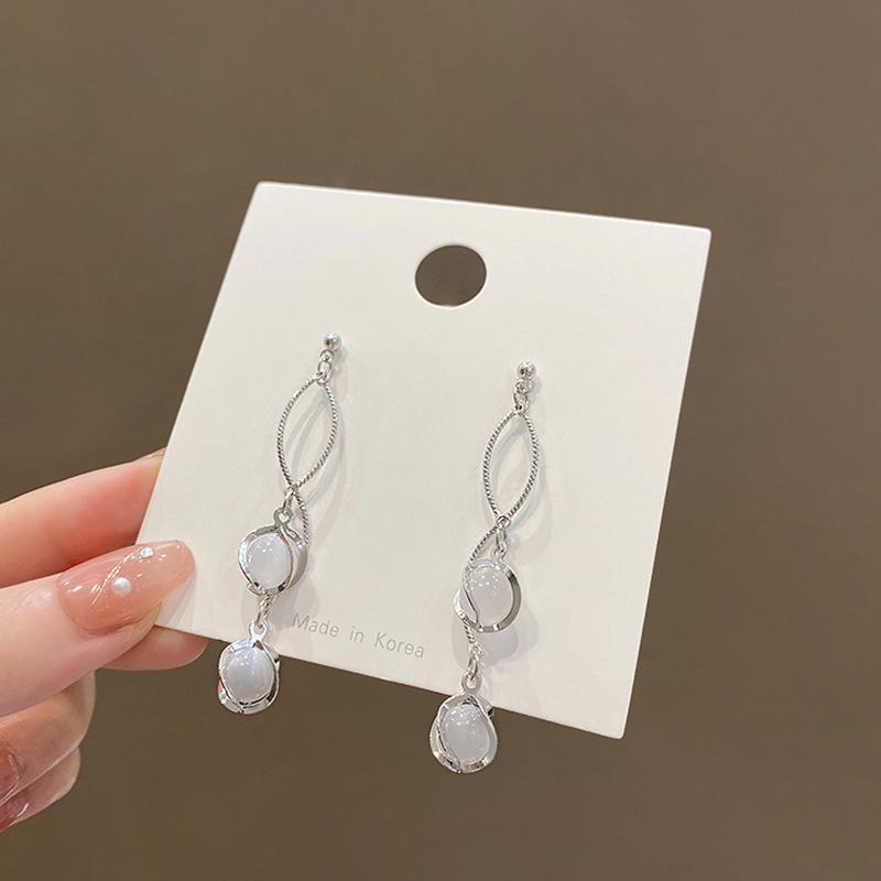Irregular Retro Opal Fringed Long Earrings Women's Cold Wind Temperament Internet Celebrity Earrings Round Face Thin Earrings