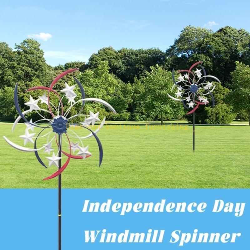 Metal Garden Stake Wind Spinner Yard Stake American National Day Windmills Yard Garden Pinwheels Independence Day