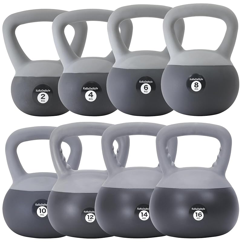 KaRaDaStyle Soft Kettlebells, 2kg, 4kg, 6kg, 8kg, 10kg, 12kg, 14kg, and 16kg Capacity Set, Wide Handles for Easy Grip, Training, Soft Kettlebells,