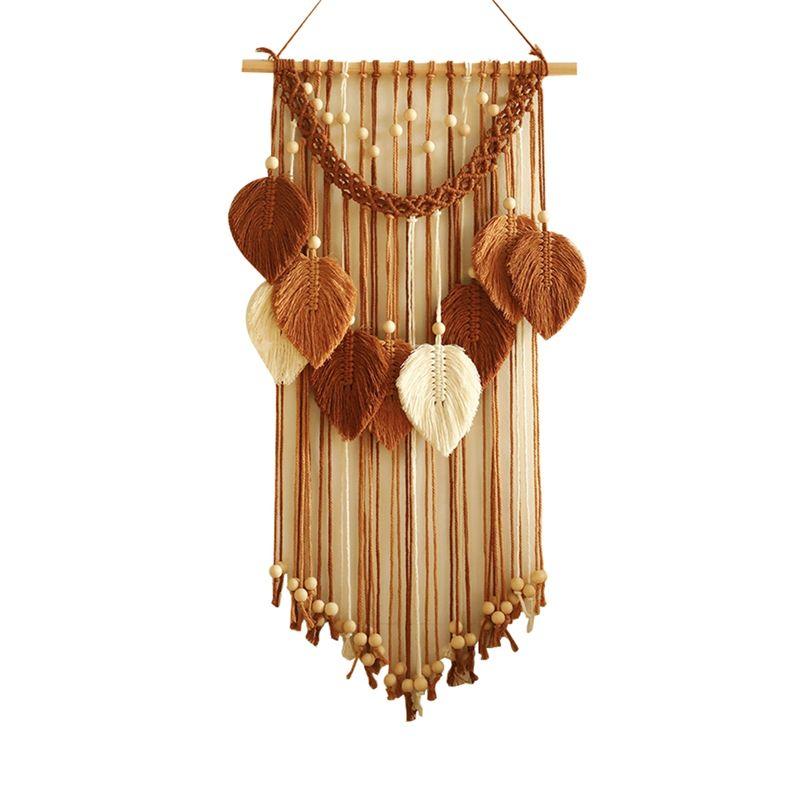 Good-Multicolor Leaves Tapestry Boho Hand Woven Macrame+Wooden Beads Crafts Wall Hanging Nordic Home Decoration Mother Day