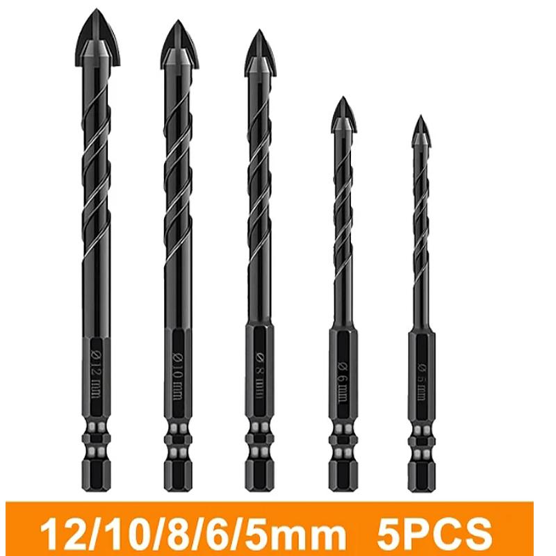 Cross Hexagonal Ceramic Tile Glass Cement Metal Ceramic Wood Plastic Hole Saw Triangular Alloy Drill Bit 5-Piece Set