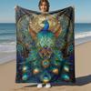 1PC Peacock Stained Glass Outdoor Flannel Blanket Soft Plush Decor for Picnics, camping,Bedroom, Playroom, Lightweight , All Season1194A