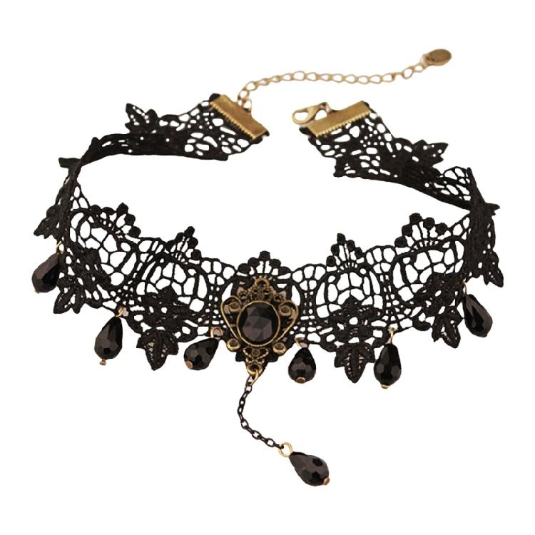 Elevating your styles with the Gothic Choker Necklace, featured intricated lace and crystal decors for a dramatic and sophisticated look.