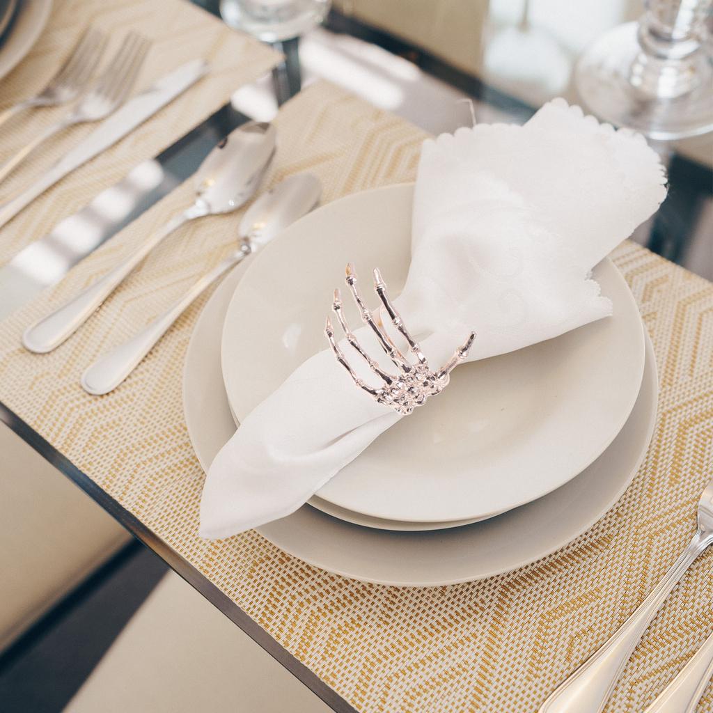 6Pcs Napkin Rings Halloween Decorative Alloy Ghost Palm Shaped Holders Stylish Table Ornaments for Home Decoration Use