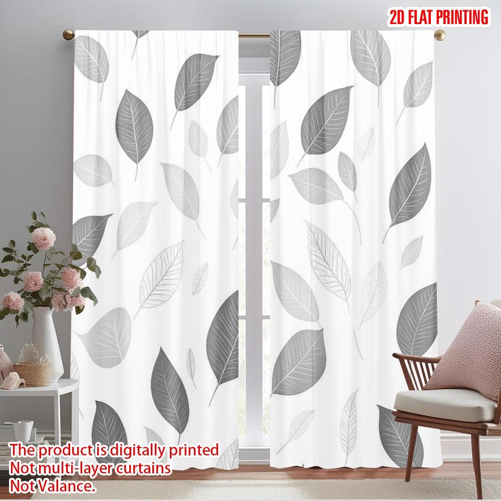 2pcs,2D Plane Printing Creative Curtains Monochrome Leaves Polyester Easy Install (without Rod) Art Deco Festive Perfect for