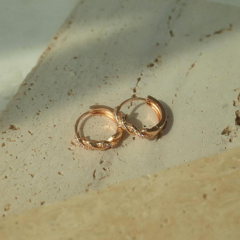 Micro-set Zirconia Twist Earrings Female Ins Niche Design Sense of Temperament Fashion Earrings Ear Buckle Celebrity Simple Earrings Casual Daily