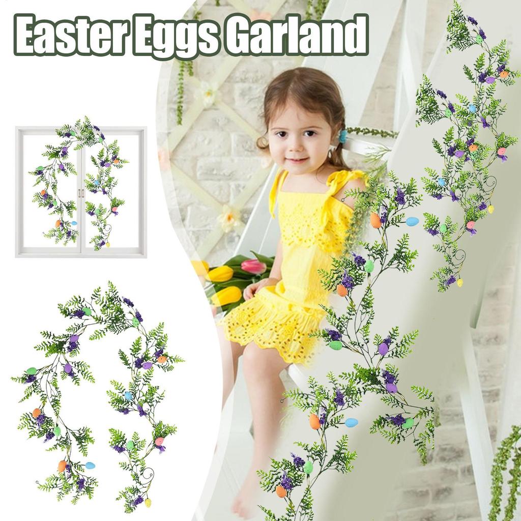 Easter Garland Decor Spring Ornament Holiday Decorations Rustic Artificial Easter Eggs Garland For Home Indoor Wall Fireplace