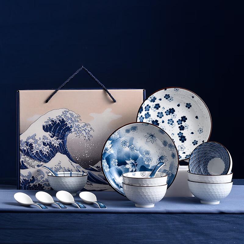 Jutaoren Kanagawa Blue 10-Piece Ceramic Tableware Set