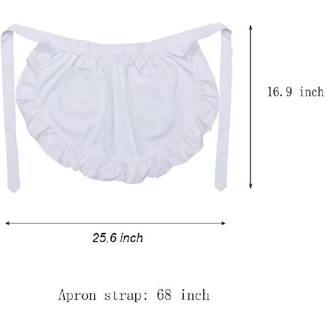 Women's Waist Apron with Two Pockets Half Apron Waitress Servant Cosplay Costume Halloween Maid Outfit Aprons for Kitchen Cooking Restaurant Coffee