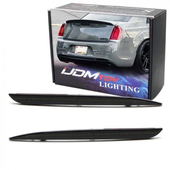 Interchange Part Number:2015-2023 Chrysler 300, OE-Spec LH RH Assembly, Black-Out Smoked Rear Bumper Reflector Lenses Compatible With
