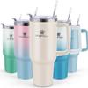 【Double Wall Vacuum Insulation】Soufull 40 oz tumbler made with double wall vacuum insulation and 304 stainless steel, which keeps beverages cold for up to 34 hours and hot for up to 10 hours. It means the insulated tumbler cup keeps your favorite drinks ice cold or piping hot for hours. Let you enjoy hot and iced drinks until the last sip.