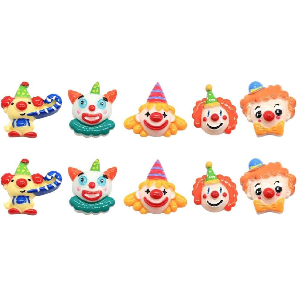 Amosfun 10pcs Resin Clown Charms Hair Barrettes Making Charms Handmade Crafting Slime Charms Pendants for Headband Headdress DIY Crafts (Random Style