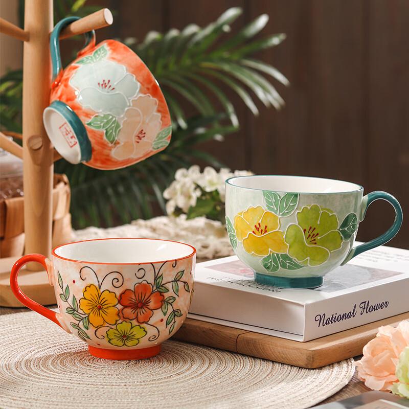 Hand-Painted Embossed Ceramic Tea/Milk Cup