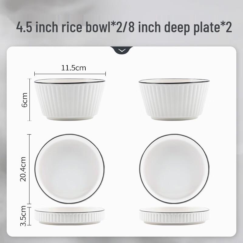 Model2x 4.5in Rice Bowls + 2x 8in Deep Plates
