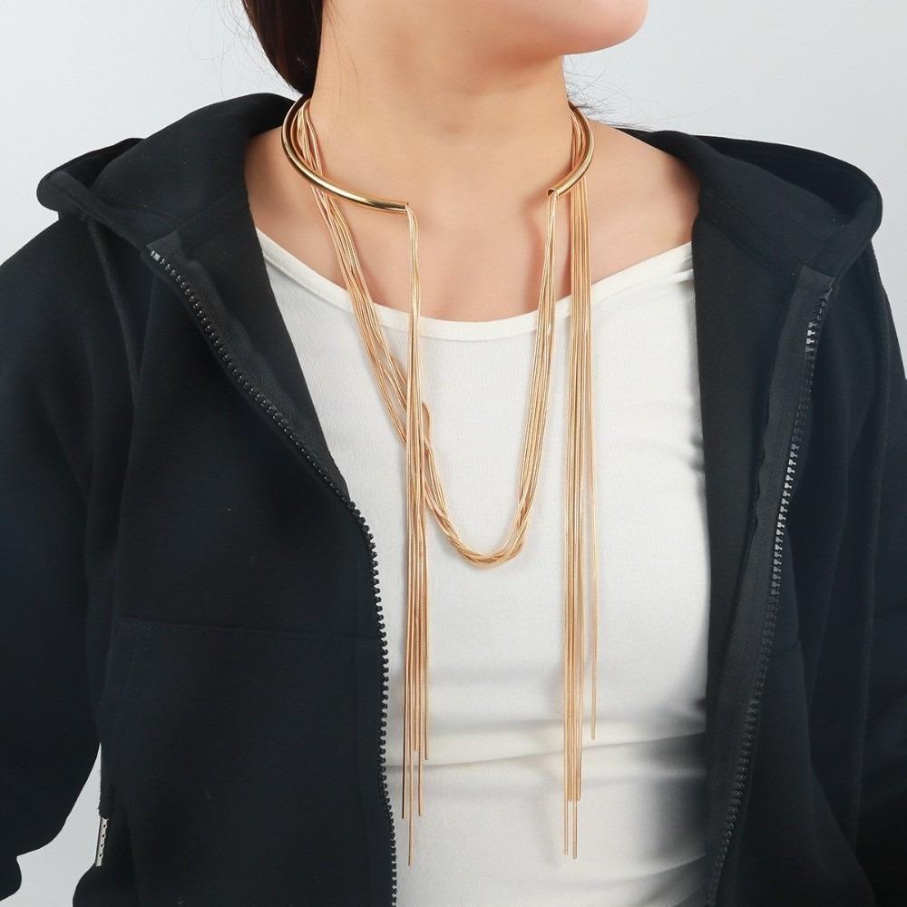 Gold Silver Tassel Necklace Alloy Long Chain Fashion Personalized Design Collar Women