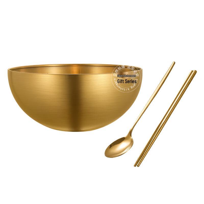ModelChinese Style Stainless Steel Golden Rice Bowl Gift Set