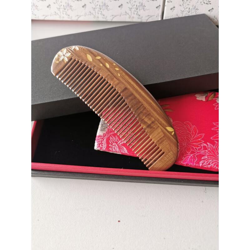 Tan Mujiang Floating Flower Lacquer Art Wooden Comb