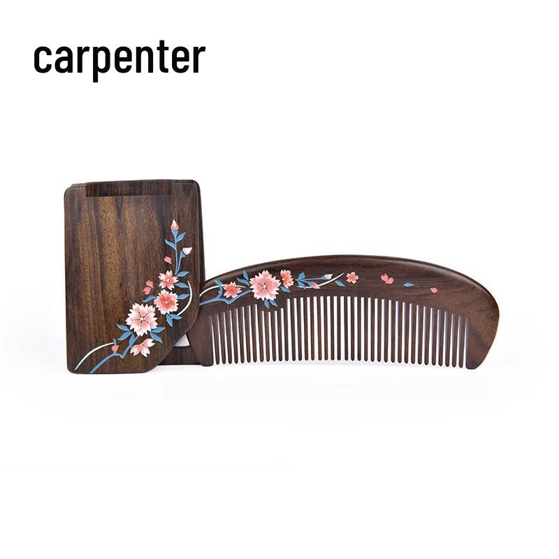 Tan Mujiang Wooden Comb & Mirror Gift Set - Cherry Blossom