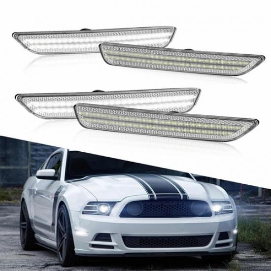 For 2010-14 Ford White Mustang LED Side Marker Light Lens Clear Front Rear 4Pcs