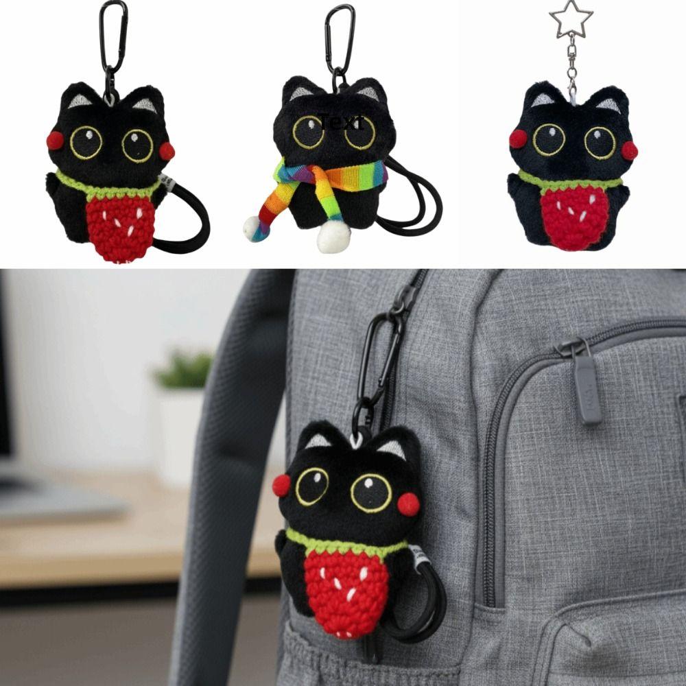 Cute Plush Toy Keychain Black Cat Car Key Ring New Doll Bag Pendant Bag Accessories