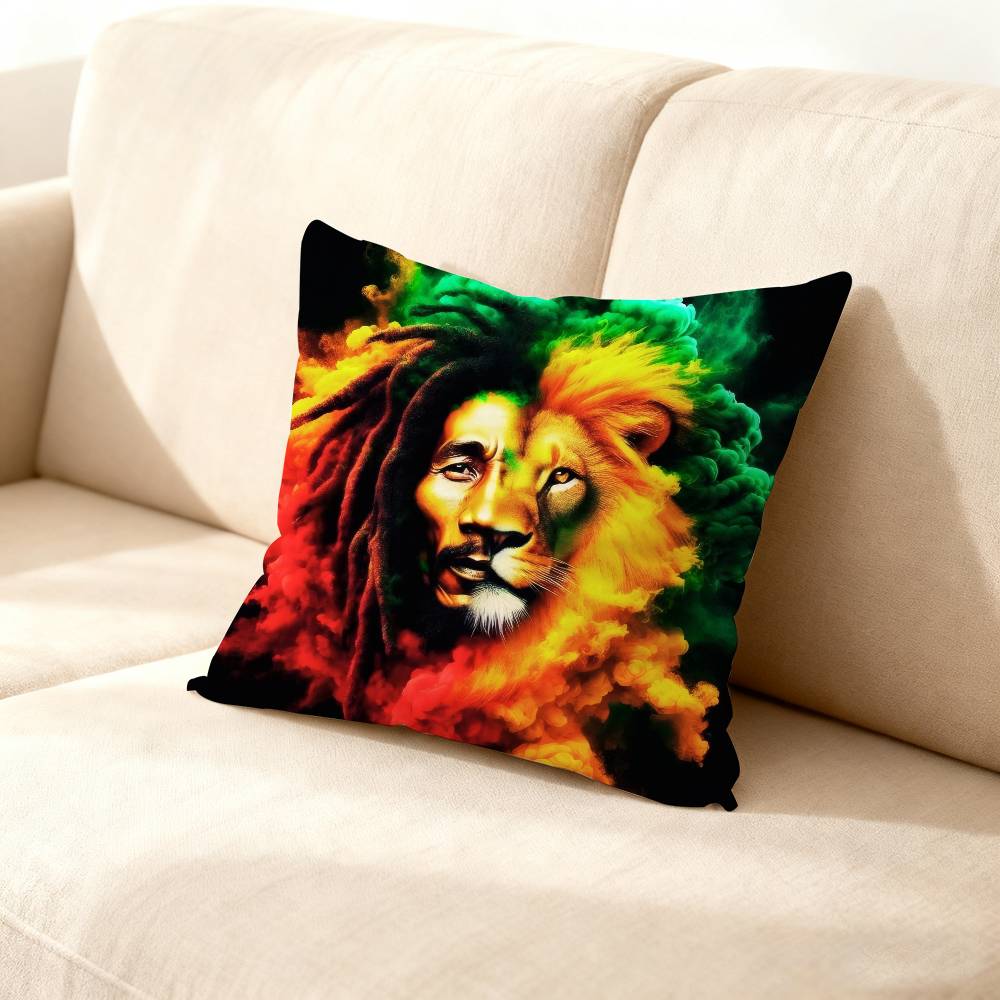 Bob Marley Rasta Lion Pillow Case For Sofa Decor Car Office Room Printing Cushion Cover Decorations and Protector