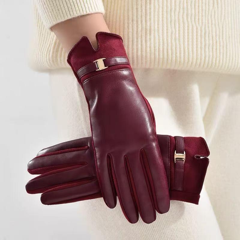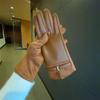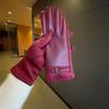 Women's Protein PU Leather Suede Touch Screen Compatible Fashion Commuting Thick Velvet Insulated Belt Buckle Riding Gloves